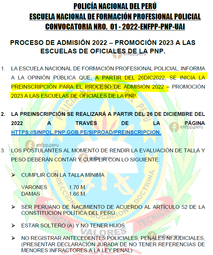 Se inicia proceso de Admisión 2023 a la Escuela de Oficiales de la Policía Nacional del Perú EOPNP desde 26 diciembre 2022